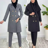 مانتو شلوار اداری دیپلمات 6 دکمه پرشین مکانیک یقه انگلیسی