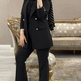 👚نام : کت و شلوار مدل سوگل 👗سایزها : سایز1(36_38_44) , سایز2(46_48) , ☸توضیحات : سایز ۱ : دورسینه حدودا ۱۰۰ قد کت ۸۰ عرض دمپا ۳۱ قد شلوار ۱۰۲ سایز دو : دورسینه ۱۰۶ (با جابجایی دکمه تا ۴سانت بزرگم میشه) قد کت ۸۰ قد شلوار ۱۰۲ عرض دمپا ۳۳ ✅شلوار دمپا گشاد ✅یکی از دکمه های کت کاربردی ✅دوخت مزونی و کیفیت پارچه عاااالی ✅تنخور فوق العاده ✅پشت کمر شلوار کش و از جلو دکمه و زیپ میخوره ✅دم آستین سه دکمه میخوره ارسال فوری☸☸ 🧵جنس : سوپر مازراتی نخ توئیست اعلا 🖌 رنگ بندی : مشکی - ⚜️ سایز ها : 1 - 2 -