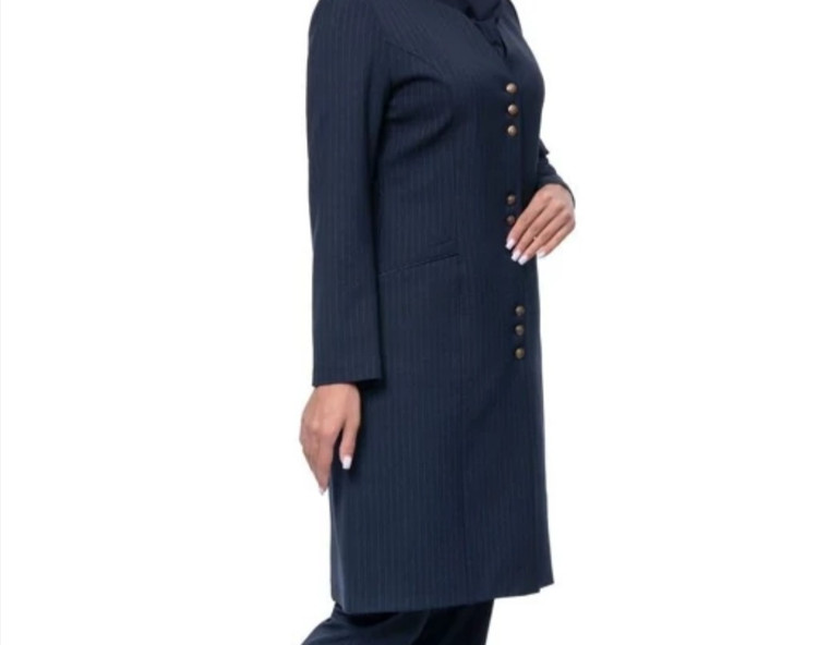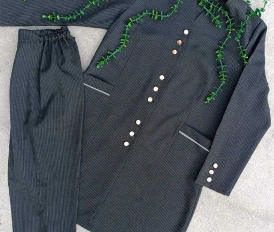 📌توضیحات :دوخت بسیاااار حرفه ای,جیبها کاربردی، پشت مانتو کمری و چاک داره.دکمه ها باکیفیت و کت شلواری، کمرشلوار ازپشت کش و ازجلو زیپ و دکمه داره، پارچه خوش ایست بااتوکشی آسان، بدون ابرفت بدون رنگدهی، بدون پرزدهی